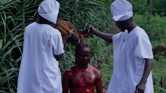 The process was also documented on film, capturing both the ritual sequences and the evolving transformation of the forest itself. Paintings for the Gods builds on a lineage of previous work that explored the convergence of spirituality, ecology, and ancestral memory. In The Palm (2024), enacted as a performance at Kunsthalle Wilhelmshaven, I examined the spiritual symbolism and material history of the palm tree in African cosmologies. Baobab: The Tree of the Gods (2022/2023) was a meditation on sacred geographies and the rituals surrounding one of the continent’s most iconic spiritual trees. Sacred Grove (2020) engaged with the documentation and activation of sculptural and shrine-based landscapes across 450 hectares of forest of the Osun Osogbo Sacred Grove, emphasizing the living presence of ancestral deities. Each project reflects a continued commitment to site-specific, ritual-infused practices that centres indigenous epistemologies and the sacred dimensions of nature.