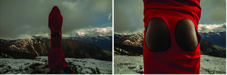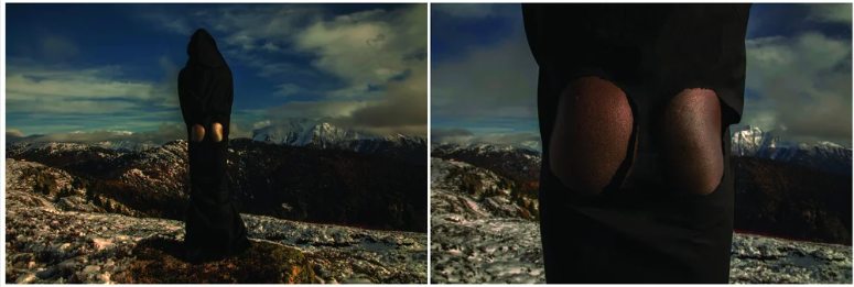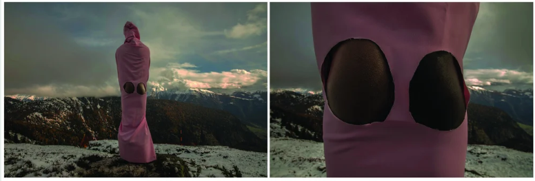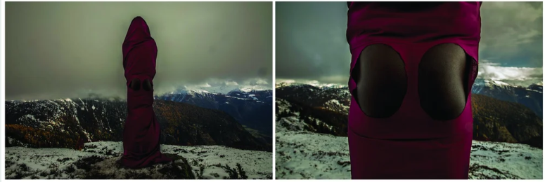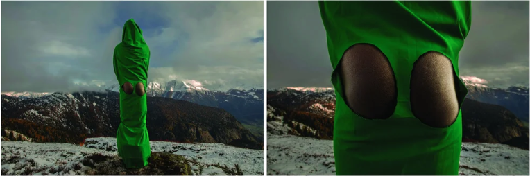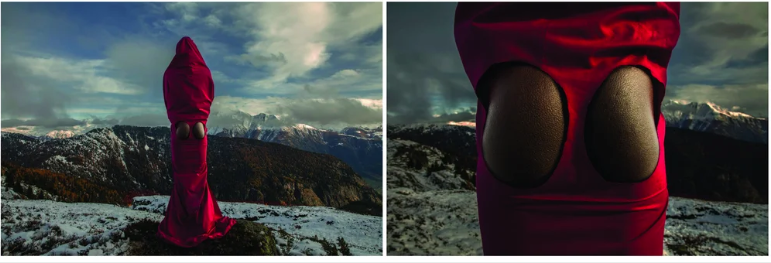 Sweet Ass, Swiss Alps is a new performance through photography, bordering on a dialogue on(with) identity, race, politics, and geography, conveyed on the clouds of activism. When in the West, we learn to be discreet, to try to blend in and not be ‘too African’. In this series, I place myself in the centre, turning my back to the camera, dominating.